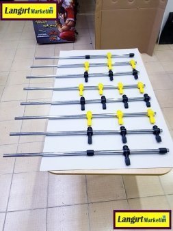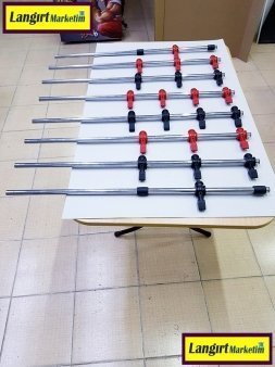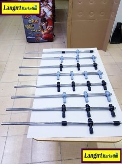 Üretimini yaptığımız langırt masalarının tüm yedek parçaları stoklu olarak elimizde mevcuttur. Bu parça çeşitlerinden bir tanesi de langırt kollarıdır. Firmamızda üç model langırt kolu mecuttur. Tornado langırt kolu modeli özel olarak yaptığımız bir modeldir. Langırt kolumuz 18 mm çelik çekme krom kaplamalı boru üzerine ; abs plastikten imal edilmiş oyuncu bebeklerinin enjeksiyonda basılmasıyla yapılmıştır. Langırt kol borusunun uzunluğu 85 cm dir. Oyuncu bebeklerinin renkleri sarı ve siyah renktir. Bu modelimizde oyuncu dizilişi 3 4 3 sistemindedir.